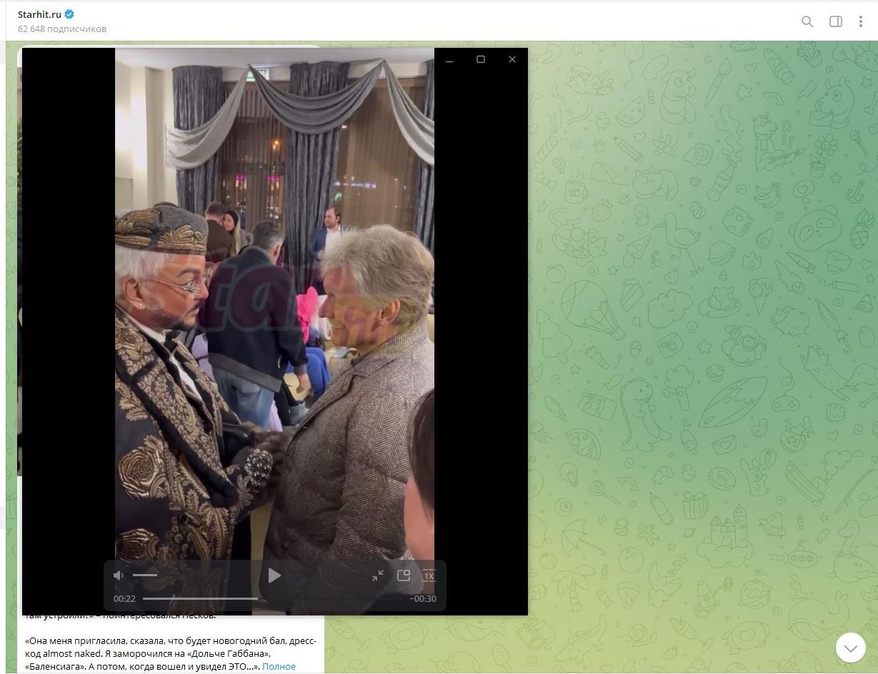 "Я КОГДА ЗАШЁЛ И УВИДЕЛ ЭТО…" - КИРКОРОВ ВЕСЕЛИТ ДМИТРИЯ ПЕСКОВА РАССКАЗОМ О ВЕЧЕРИНКЕ ИВЛЕЕВОЙ. СКРИНШОТ: ТЕЛЕГРАМ-КАНАЛ STARHIT.RU