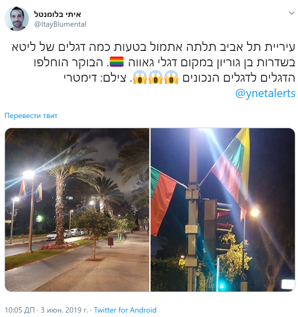 Гордость не того цвета: В Тель-Авиве перед парадом ЛГБТ вывесили флаги Литвы