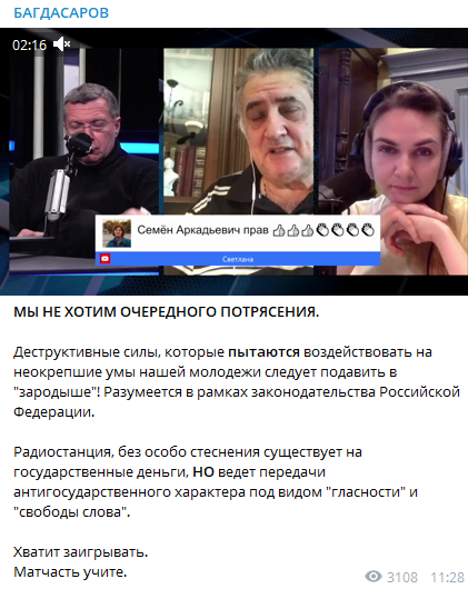 Востоковед Семён Багдасаров, показав в своём Telegram-канале видеозапись с этого "мероприятия", прокомментировал: "Господа, вы звери".