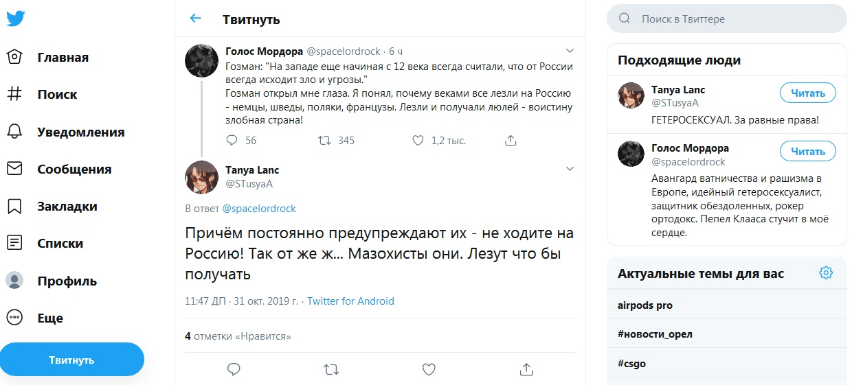 "Гозман открыл мне глаза. Я понял, почему веками все лезли на Россию - немцы, шведы, поляки, французы. Лезли и получали люлей - воистину злобная страна!", - пишет в Twitter "Голос Мордора".
