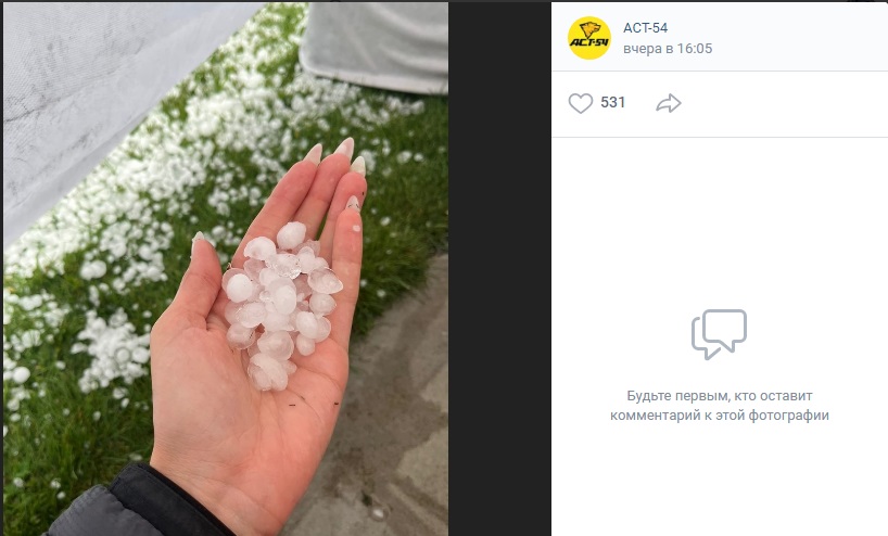 Крупный град, выпавший в минувшее воскресенье, 7 июля, в Новосибирской области, серьёзно повредил урожай садоводов, а также некоторые автомобили. О капризах стихии сообщили из села Прокудское Коченёвского района. Также град шёл и в Новосибирском районе области - о нём сообщили из посёлка Приобский.