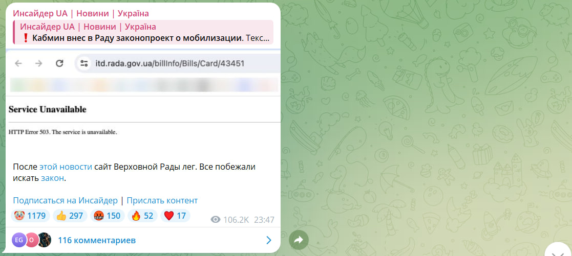 Украинцы, мягко говоря, недовольны. Сайт парламента перестал работать сразу после публикации закона. С этой же проблемой столкнулся и сайт Верховной рады. Вероятно, сложности с доступом связаны с большим наплывом посетителей.