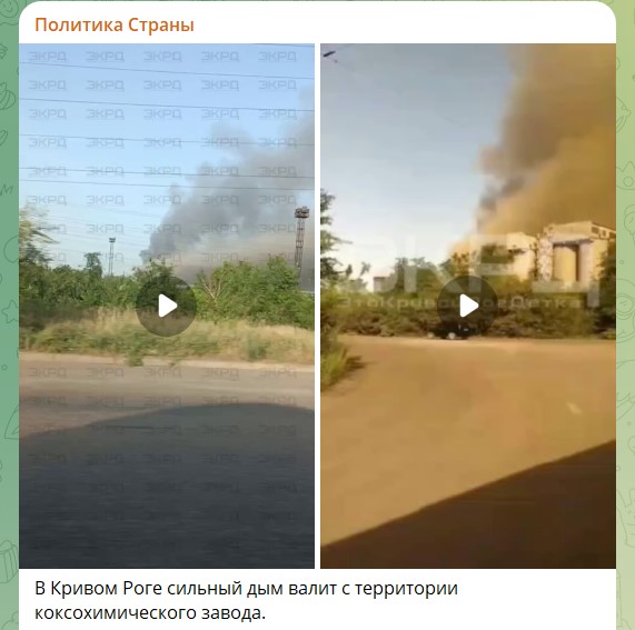 ЧП произошло на коксохимическом заводе Кривого Рога. С его территории валит сильный дым, указывает телеграм-канал "Политика Страны". По данным местных пабликов, город затянуло смогом и неприятным запахом. При этом местные жители добавляют, что ночью на заводе слышались громкие звуки.