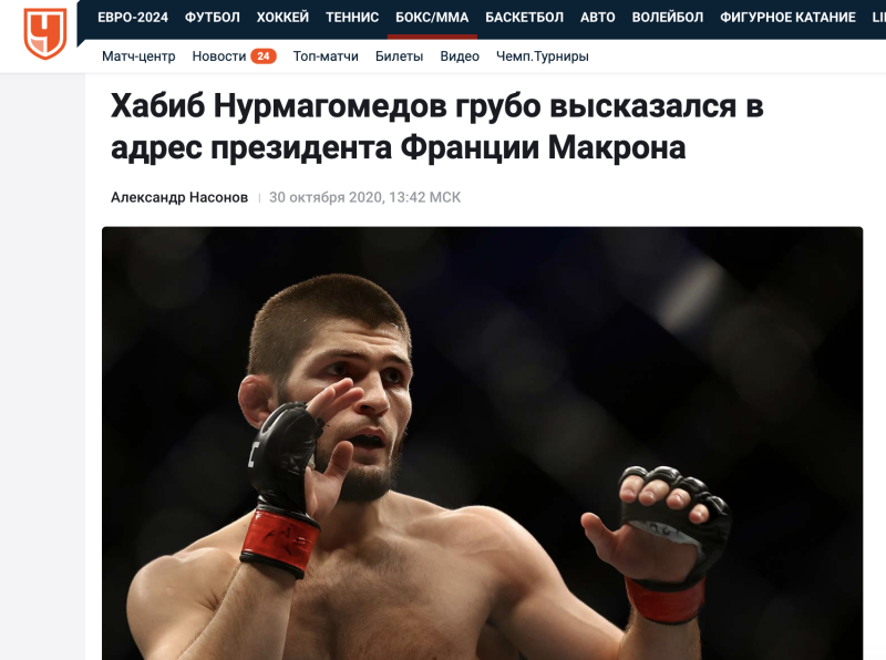 В этом контексте ненароком вспоминается ситуация, произошедшая в 2020 году. Тогда боец призвал мстить президенту Франции Эммануэлю Макрону за то, что тот "оскорбил чувства мусульман". В России Макрона хоть и не любят, но важно отметить, что тогда он попытался выступить против исламизации французов, напомнив, что учитель одной из школ был обезглавлен уроженцем Чечни Абдулаком Анзоровым.