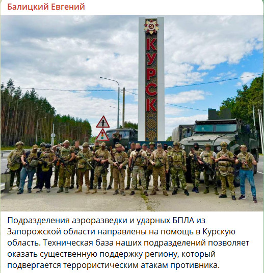 Меж тем подразделения аэроразведки и ударных БПЛА из Запорожской области направлены на помощь в Курскую область, рассказывает губернатор Запорожской области Евгений Балицкий.