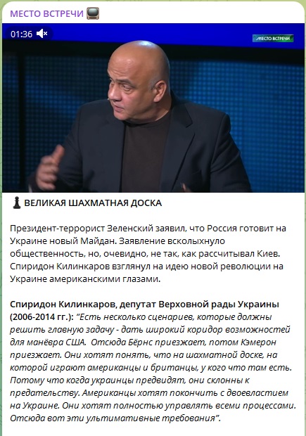 Отсюда Бёрнс приезжает, потом Кэмерон приезжает. Они хотят понять, что на шахматной доске, на которой играют американцы и британцы, у кого что там есть. Потому что когда украинцы предвидят, они склонны к предательству. Американцы хотят покончить с двоевластием на Украине,