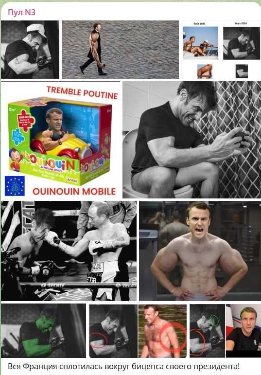 Официальный фотограф разместила вчера на своем аккаунте в Instagram* фотографии нашего национального Рокки Бальбоа, тренирующегося для ремейка "Рокки IV" в России против Путина. Итак, мы платим налоги, чтобы Макрон мог сделать несколько красивых фотосессий бокса. Быстрый вопрос: сколько стоит такая фотосессия? А сколько стоит фотошоп, чтобы создать впечатление, что у него руки как у Сильвестра Сталлоне, хотя на самом деле у него руки Макрона. В целом, я думаю, Путин очень, очень напуган. Он испугался. Он больше не тянет, он прячется. Ведь это послание из бокса Макрона было адресовано господину Путину. Берегитесь, мистер Путин, Макрон, с его большими мускулами, большими руками, ждет вас.