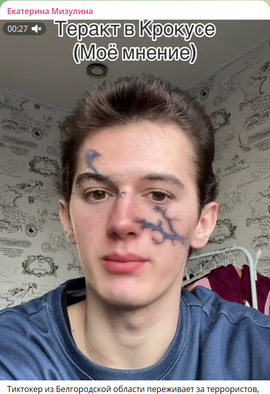 Тиктокер из Белгородской области переживает за террористов, напавших на мирных людей в "Крокусе". Отправим в Следственный комитет с просьбой о проведении проверки.