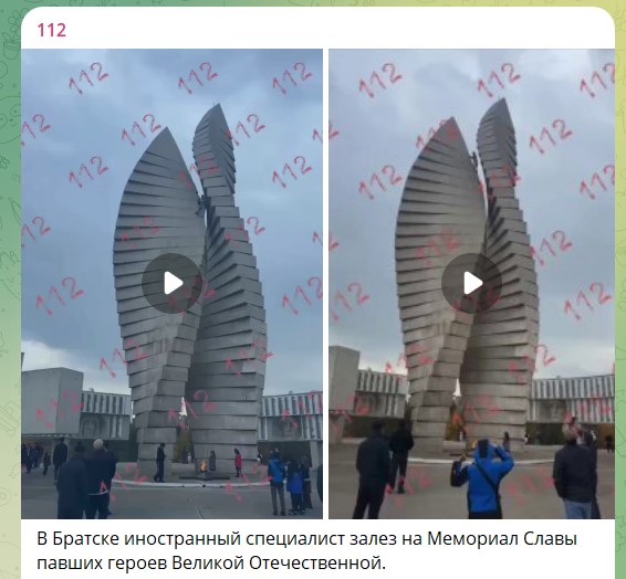 "Хотел своя силу проверить": Таджик залез на мемориал воинской славы в Братске. Диаспора извиняется, следователи работают