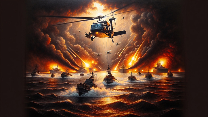 Итак, о морской дуэли в Чёрном море в районе мыса Тарханкут в Крыму можно судить пока только по видео, которое распространила украинская военная разведка. На кадрах, снятых, судя по всему, с украинского безэкипажного катера (БЭК), видно, как тот поймал на прицел русскую "вертушку". Если верить этим кадрам, происходит то, чего ещё никогда не было прежде: беспилотный водный аппарат Magura V5 прицеливается в вертолёт Ми-8 и выпускает по нему ракету. Одна "вертушка" при этом взрывается, вторая повреждается.