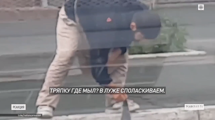 Сказали бы: молодец, специалист! Некоторые торговые точки годами не моют… Но тряпку где мыл? В луже споласкиваем. Фото: Царьград