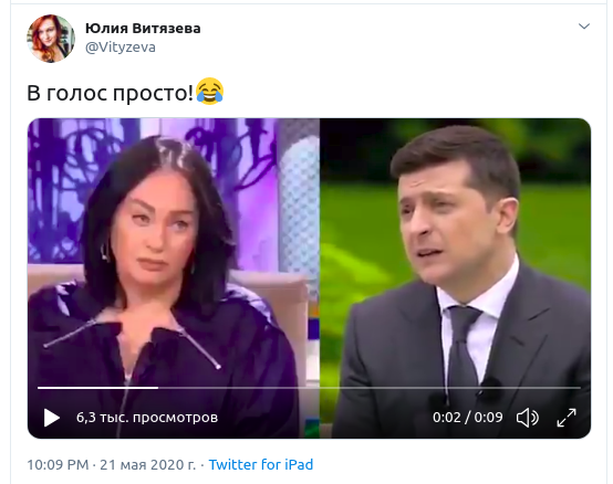 Пользователи соцсетей смонтировали ролик-мем из вопроса президента Украины Владимира Зеленского "Хто я такий?" и дерзкого, но нецензурного ответа телеведущей Ларисы Гузеевой. Журналистка Юлия Витязева, судя по её комментарию к видео, смеялась до слёз - "в голос просто".