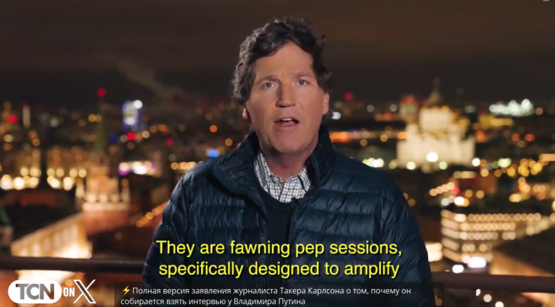Карлсон прибыл в Москву и записал небольшое видео перед встречей с Путиным. В нём он заявил, что Запад стал жертвой собственной пропаганды. Американские и европейские СМИ последние два года слушали лишь одну сторону конфликта.