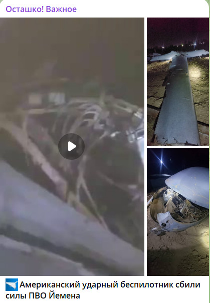 Хуситы сбили американский ударный беспилотник MQ9 Reaper