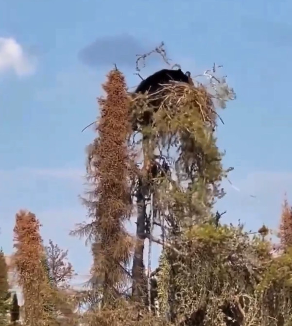 В соцсети X Ярлов опубликовал видео, где медведь залез на дерево. Его цель – орлиное гнездо на самом верху. Топтыгин не только добрался до вершины, но и вступил в схватку с птицей. Ему удалось вытащить орла из гнезда.