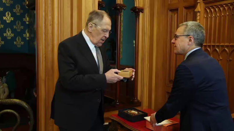 На встрече с Лавровым Кассис сделал русскому коллеге подарок - вручил ему музыкальную шкатулку, играющую Чайковского. Скриншот:Telegram/Мария Захарова