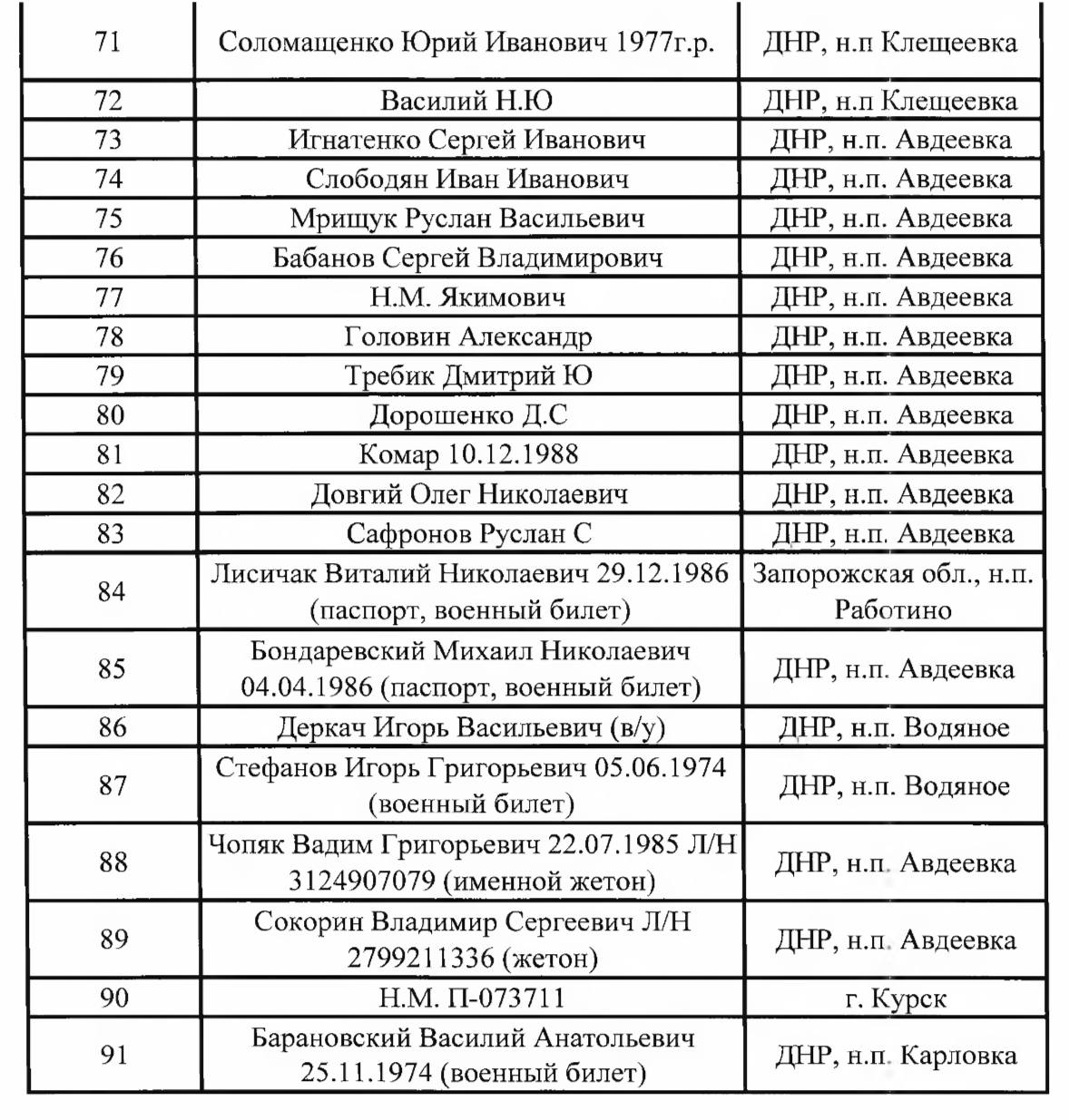 Позже губернатор Евгений Балицкий опубликовал список тел украинских погибших, чтобы их родные смогли узнать об их судьбе.