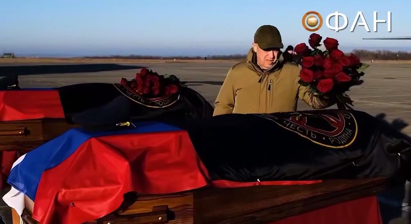 Тела павших героев удалось вернуть. Украинская сторона передала их представителям ЧВК "Вагнер", уважительно накрыв российским флагом и знаменем компании. Это отметил в своей речи ныне покойный основатель ЧВК "Вагнер" Евгений Пригожин.