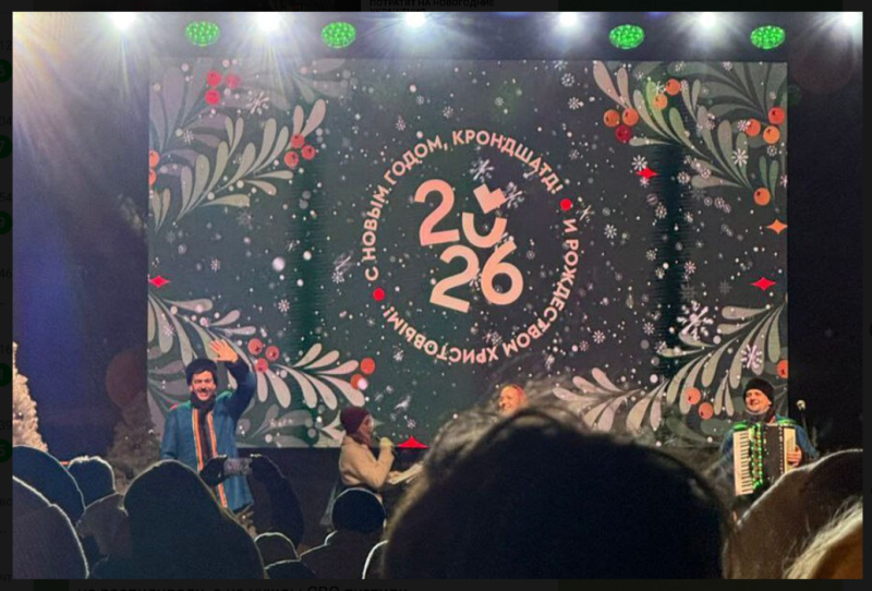 Накануне в Кронштадте состоялось новогоднее представление. Радостные горожане собрались на центральной площади города, где прошло мероприятие "В ожидании чуда!", организованное местной администрацией. Шоу было хорошим, а вот надпись на сцене - не очень: "С новым годом, "КроНДшаТД!".