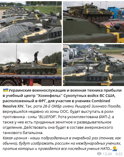 В своём Youtube-канале Журавко рассказал о ситуации с Сухопутными войсками Вооружённых сил Украины, которые прибыли в учебный центр "Хохенфельс" Сухопутных войск ВС США в Германии для участия в международных учениях НАТО Combined Resolve XIV.