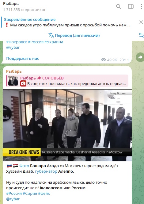 Якобы первое фото Асада в Москве оказалось фейком. Фото: скриншот/t.me/rybar/66173.
