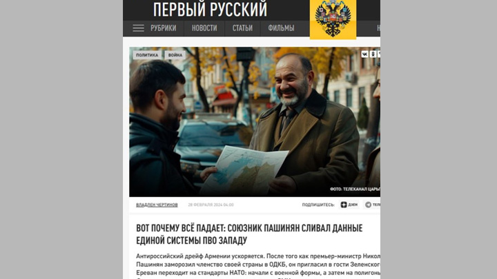 ПАШИНЯН СДАЁТ РОССИЮ. А ЗАОДНО И АРМЕНИЮ. СКРИН С САЙТА "ЦАРЬГРАД ТВ"