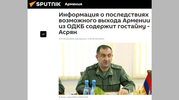 ОТВЕЧАЯ НА РЕПЛИКУ ЖУРНАЛИСТА О НАЛИЧИИ СОВМЕСТНЫХ СТРУКТУР В РАМКАХ ОДКБ, АСРЯН УКАЗАЛ, ЧТО "ОНИ СУЩЕСТВУЮТ ЛИШЬ НА БУМАГЕ". СКРИН САЙТА ARMENIASPUTNIK