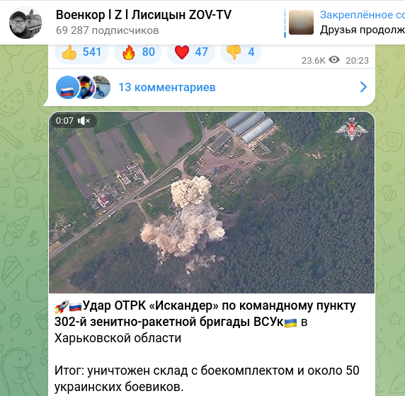 На днях стало известно о мощном ударе "Искандера" по замаскированному штабу ВСУ в районе села Старая Водолага в Харьковской области. Выяснилось, что "Искандер" постучался в секретный бункер, где располагался 302-й украинский зенитный полк.