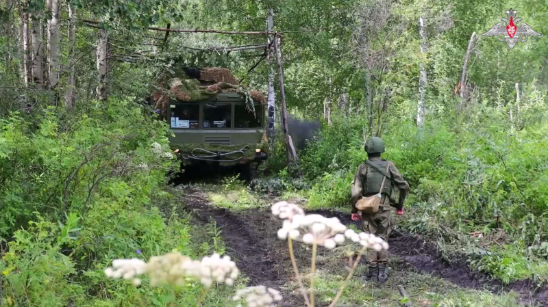 На кадрах, распространённых ведомством, можно увидеть "Искандеры" и военную технику, которая едет по грунтовым дорогам, а также подготовку к учениям.