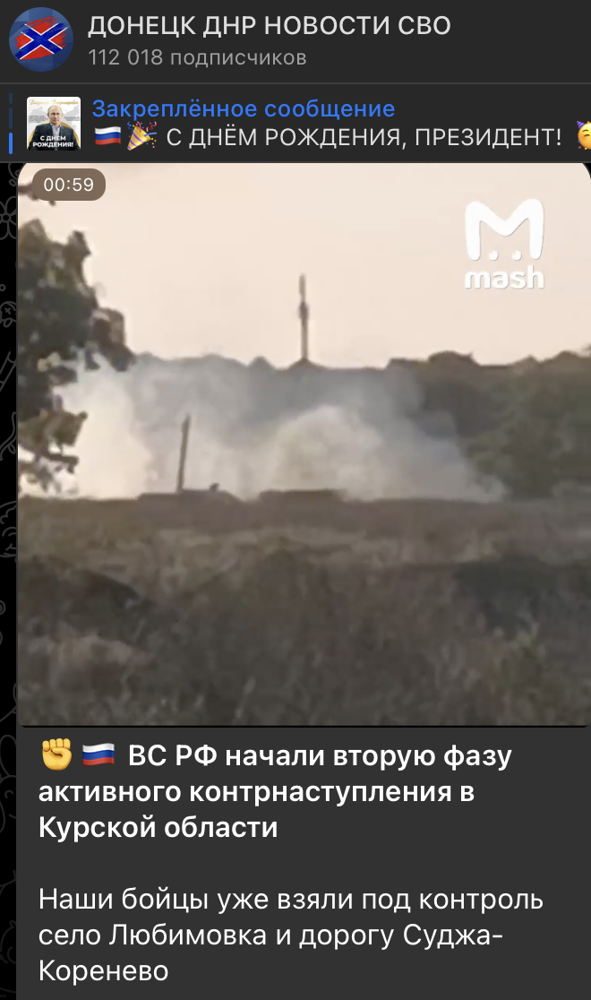 Вчерашний день начался с неожиданной атаки нашей 155-й бригады морской пехоты Тихоокеанского флота, которая продвигалась двумя колоннами. Одна из них двигалась по трассе Коренево - Суджа через Зелёный Шлях, в то время как другая обходила ВСУ с юга через Толстый Луг. К 11:00 бригада полностью окружила гарнизон ВСУ в Любимовке, отрезав ему пути к отступлению, сообщает военный блогер Юрий Подоляка. Параллельно наши войска нанесли удар по врагу в Ольговке, вынудив к отступлению.