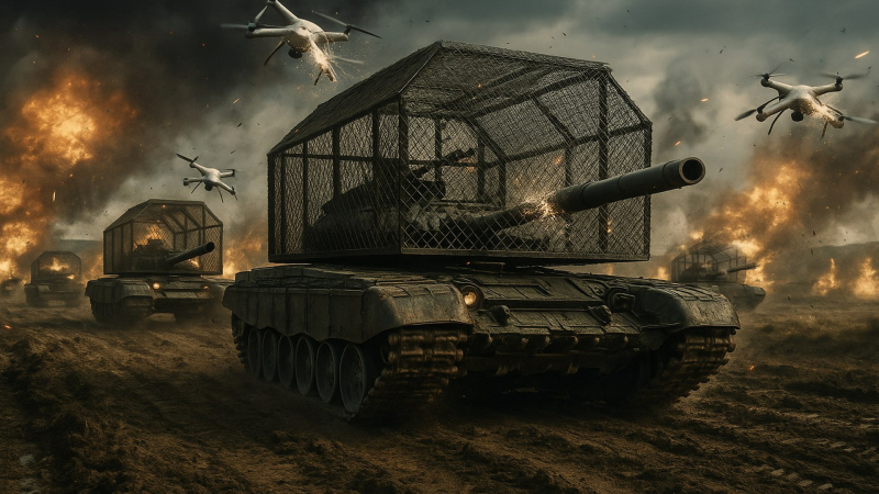- приводит 20 Minutos описание новинки, призванной вынудить вражеские дроны сдетонировать ещё до контакта с бронёй.