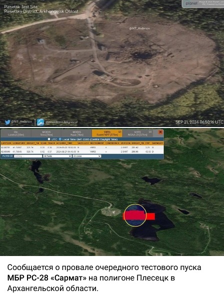 Утверждается, что инцидент произошёл на полигоне Плесецк в Архангельской области. Якобы ракета взорвалась прямо в шахте, оставив огромный кратер, и нанесла значительный ущерб испытательному полигону. При этом отмечается, что во время испытаний "Сармат" не был снаряжен ядерным боезарядом.