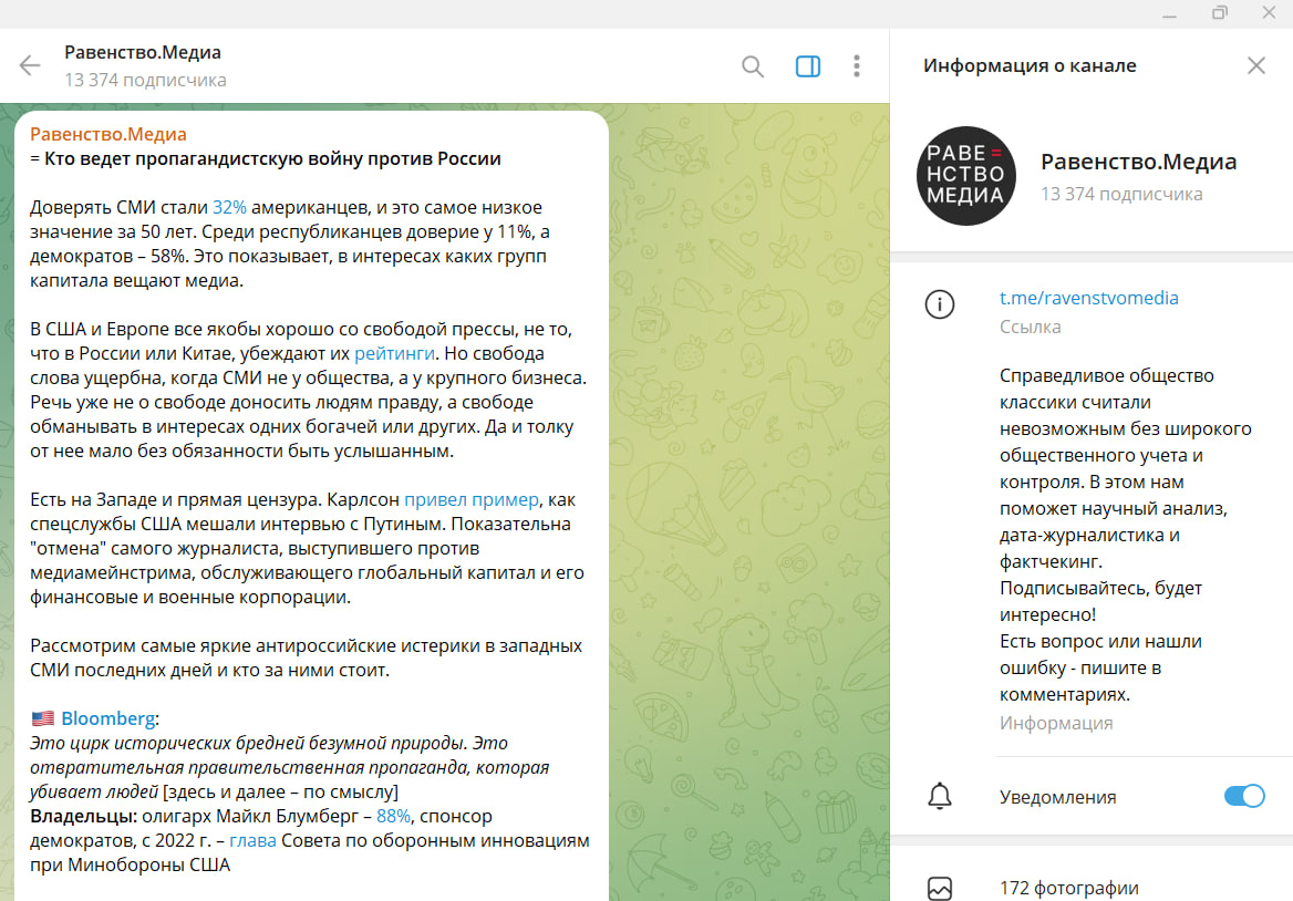 Telegram-канал "Равенство.Медиа" поделился обширным списком самых агрессивных антироссийских СМИ и их владельцев: