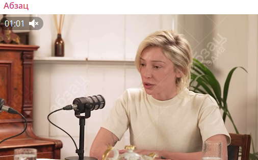 Ивлеева предстала перед зрителями канала скромно одетой и даже без макияжа. СКРИНШОТ: TELEGRAM/АБЗАЦ