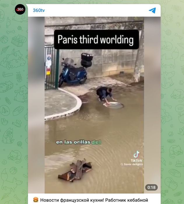 В преддверии открытия Олимпиады в Париже турист из Испании заснял неблаговидную картину - в центре города уличный продавец решил помыть посуду... прямо в реке.