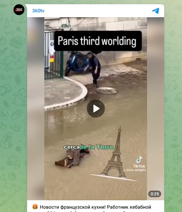 Работник кебабной возле Эйфелевой башни моет блюдо в Сене, а затем подаёт на нём еду посетителям. Новостями "французской кухни" на новый лад поделился турист, приехавший в Париж из Испании и явно ошеломлённый увиденным.