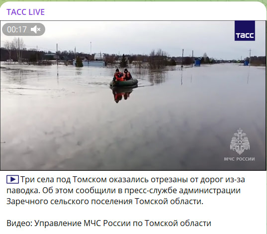 Ранее, 11 апреля, сообщалось, что из-за паводка от регионального центра было отрезано не менее трёх сёл под Томском.