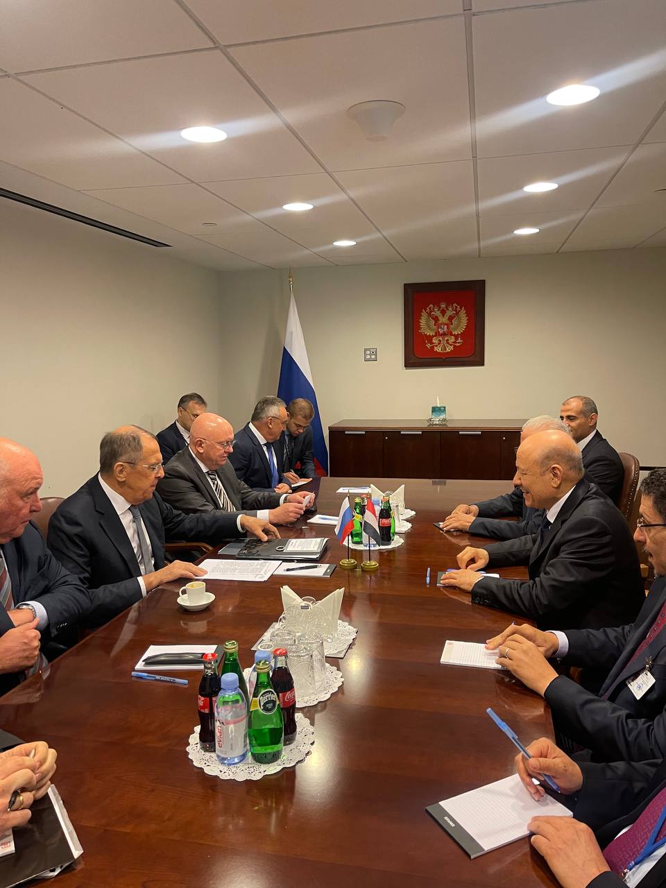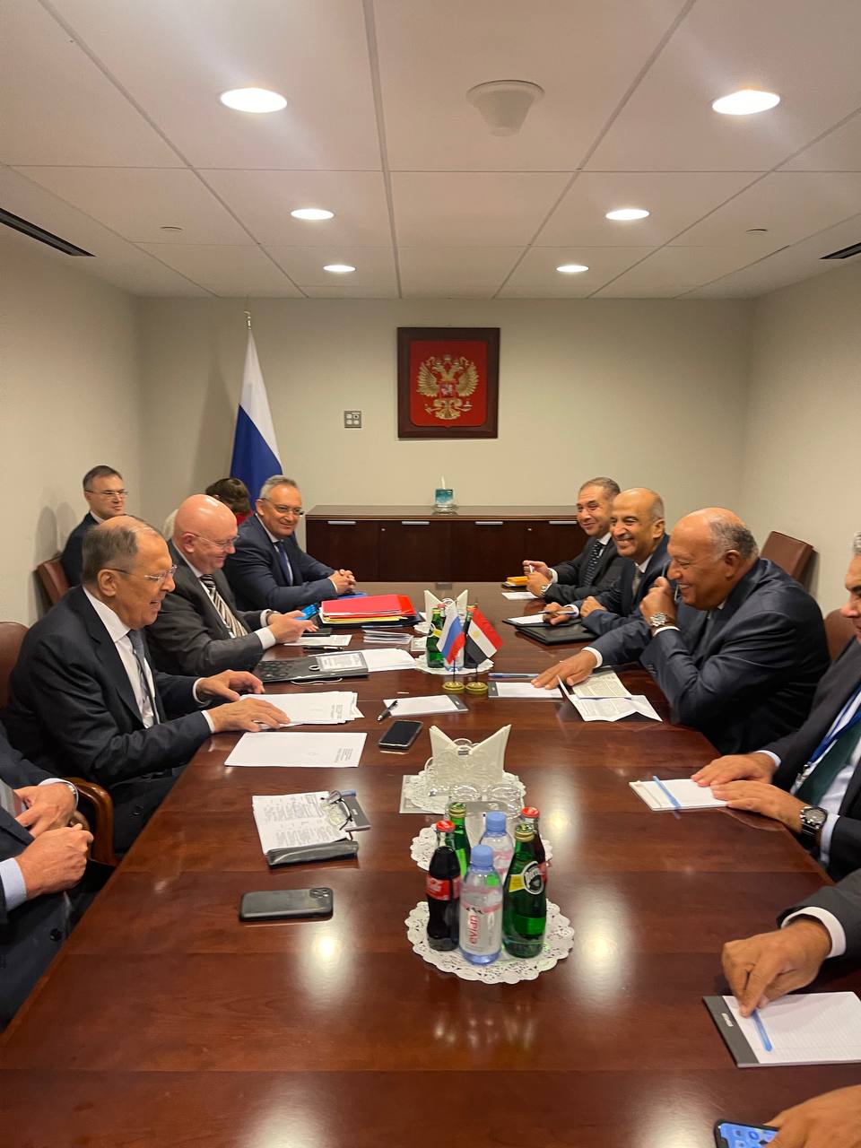 Представитель МИД России Мария Захарова поделилась шикарными кадрами второго дня работы в рамках "политической недели" ГА ООН. На кадре запечатлён Сергей Викторович, начавший переговоры со своим йеменским коллегой. Можно сделать вывод, что русско-египетские переговоры в ООН прошли очень тепло, ведь в кадре дипломаты выглядят вполне добродушными и даже смеются.