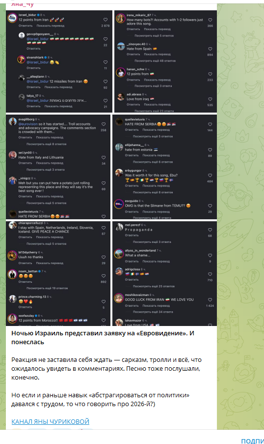 Посмотрите, что пишут люди со всего мира под новостями об участии Израиля в "Евровидении":