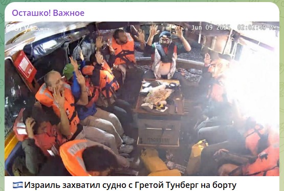 Стало известно о нападении на судно "Мадлин" с двенадцатью пропалестинскими активистами на борту, которое двигалось в побережью сектора Газа. Отмечается, что среди прочих на борту находятся шведская экоактивистка Грета Тунберг и ирландский актер Лиам Каннингем, известный по роли в сериале "Игра престолов".