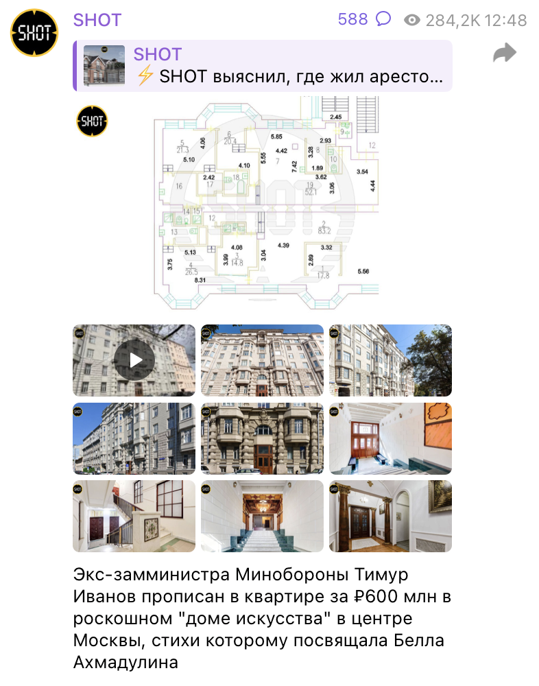 ПО ДАННЫМ ТГ-КАНАЛОВ, ИВАНОВ БЫЛ ПРОПИСАН В ДРУГОМ ДОМЕ 19 ВЕКА. ФОТО: СКРИНШОТ T.ME/SHOT_SHOT