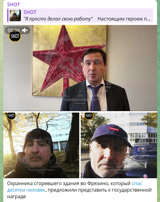 "Я делал свою работу": Охранника сгоревшего здания во Фрязино, спасшего десятки человек, предложили представить к госнаграде
