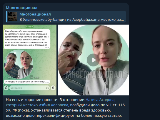 Однако эта осторожная формулировка порождает тревогу. В подобных случаях, когда фигурант, по мнению пострадавших, обладает ресурсом поддержки диаспоры, есть риск, что преступление не получит должной правовой оценки.