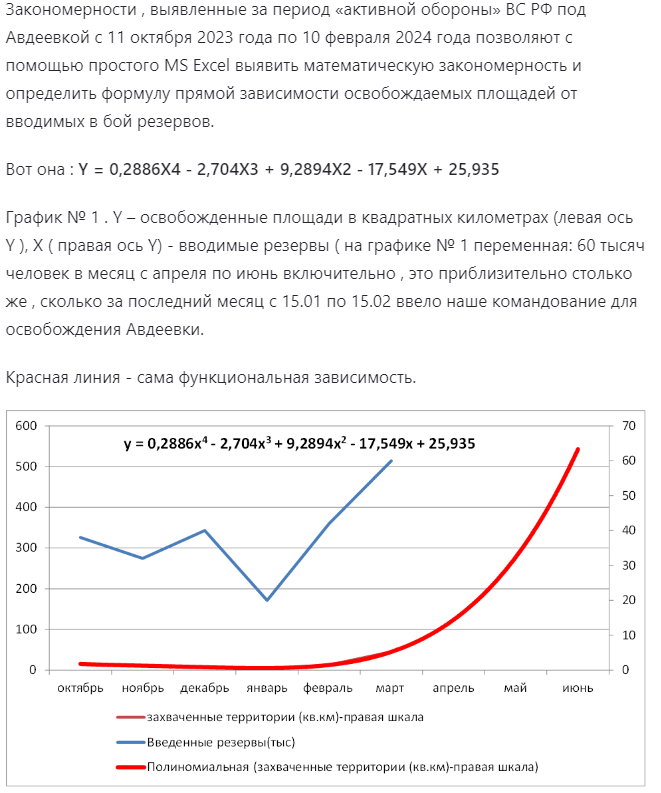 В таком случае до окончательного истощения человеческих ресурсов у противника ВС России смогут взять под контроль 850 кв.км. Это приблизительно в 3 раза больше, чем за весь летний наступ противника, но в стратегическом почти ничего. Так что наиболее вероятно, что до конца июня, в лучшем случае, будут освобождены, может быть, Купянск, Часов Яр, Северск, Орехово с десятком посёлков и сёл поменьше.