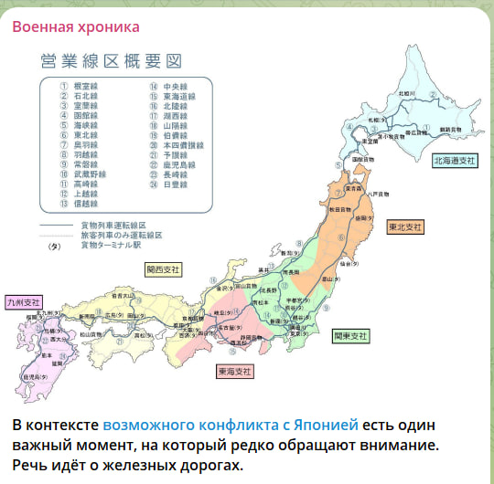 В контексте возможного конфликта с Японией есть один важный момент, на который редко обращают внимание - железные дороги. В стране почти вся железнодорожная сеть работает на пассажиров - около 95% всех перевозок. И только примерно 5% это карго. Для развитой страны это редкая ситуация.