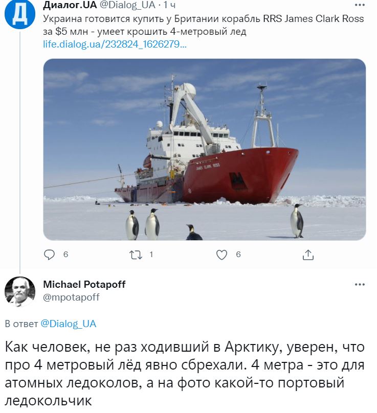Русский полярник поймал Украину на вранье о новом ледоколе, который страна готовится купить у Великобритании. По его словам, про возможности корабля украинцы "явно сбрехали".