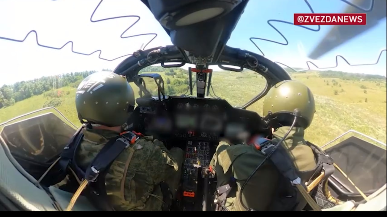 В Сети обнародованы уникальные кадры из зоны СВО. На них показано, как экипажи вертолёта Ка-52 обрушили ракетный вихрь на опорный пункт боевиков ВСУ. Цель поражена.