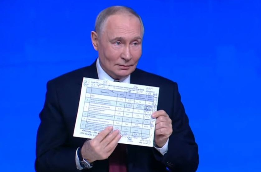 Кстати, упомянутая табличка была продемонстрирована президентом России. Посмотрите на неё и вы – как правило, все обсуждают "красную папку" Путина, а теперь, очевидно, будут говорить о пометках, сделанных президентом собственноручно.