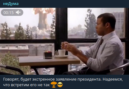 Так, в Telegram-канале "неДума" появилось сообщение о готовящемся "экстренном заявлении" президента России Владимира Путина: