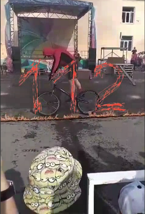Всё произошло на празднике в честь дня рождения Среднеуральского медеплавильного завода. В рамках развлекательной программы выступала группа экстремалов Trial Brothers. В их арсенале есть трюк - прыжки на велосипеде через горящий канат, как через скакалку.